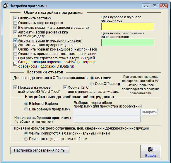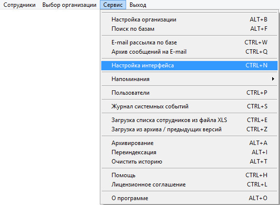 Для включения/выключения автоматического заполнения номеров приказов выберите пункт меню "Сервис-Настройка интерфейса".