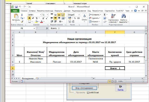 Если была выбрана опция "Есть", откроется отчет "Медицинские обследования за период".