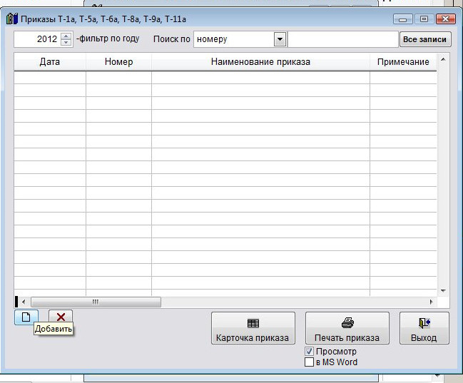 Откроется раздел Приказы Т-1а, Т-5а, Т-6а, Т-8а, Т-9а, Т-11а.
