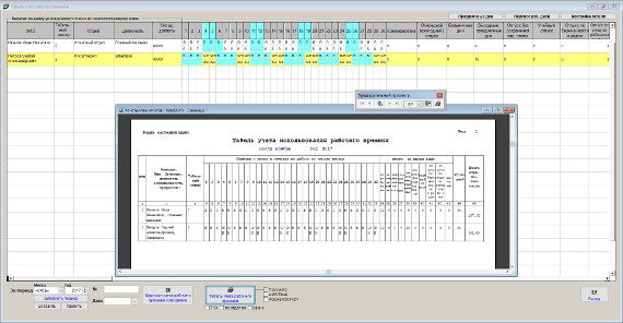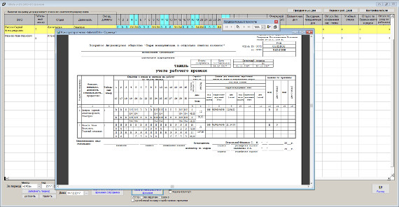 В программе есть возможность формирования табеля в MS Excel (OO Calc).
