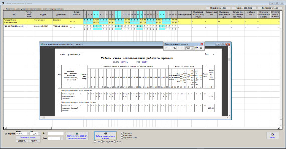 Рекомендуется 40 сотрудников на лист при печати упрощенного варианта табеля, и 20 сотрудников на лист при печати табеля с учетом отработанного времени по дням.