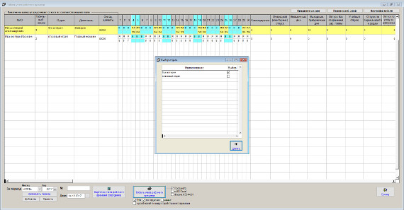 Если включена галочка "по отделам", то перед формированием табеля откроется форма выбора отделов.