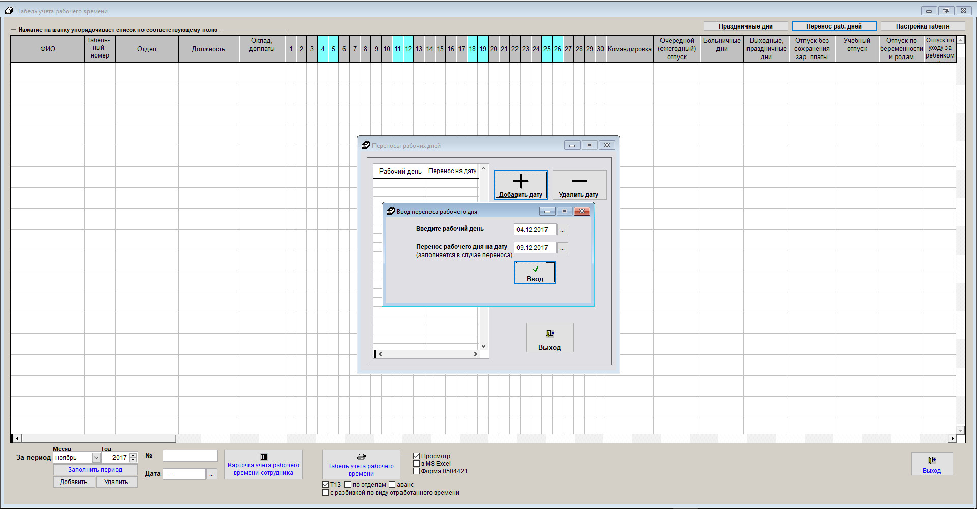 Также, при необходимости, нужно заполнить переносы рабочих дней.