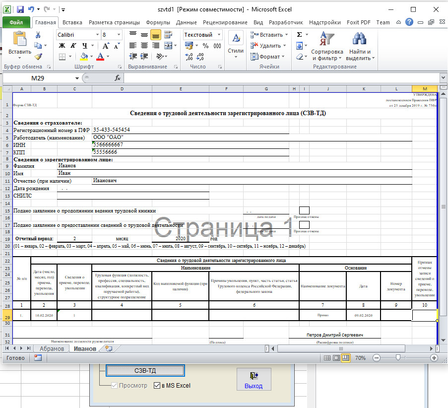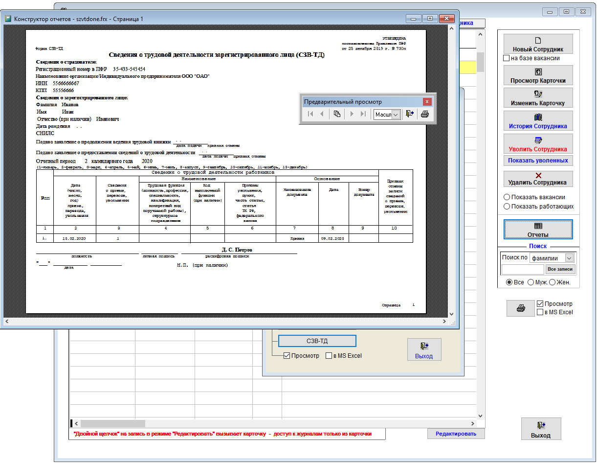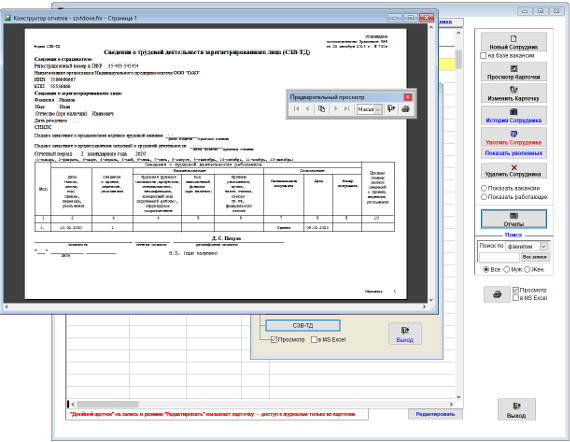 Как распечатать отчет СЗВ-ТД и сформировать xml файл для ПФР