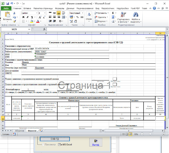 * Сформированный файл можно использовать для заполнения ЕФС-1 в другой программе.