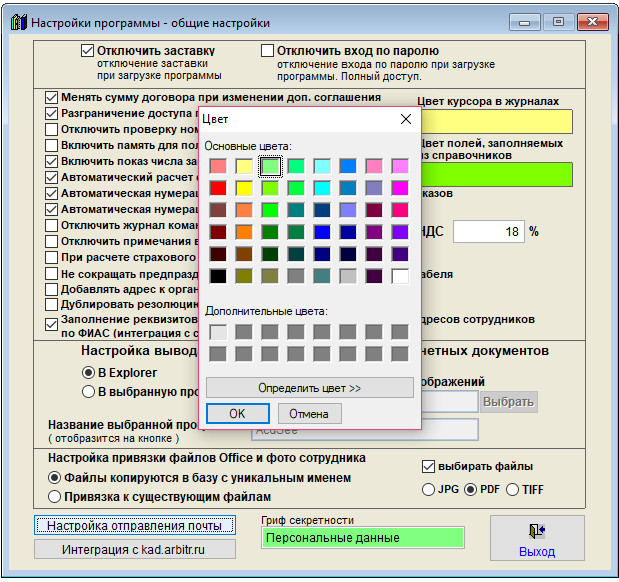 Щелкните мышью по полю "Цвет полей, заполняемых из справочников".