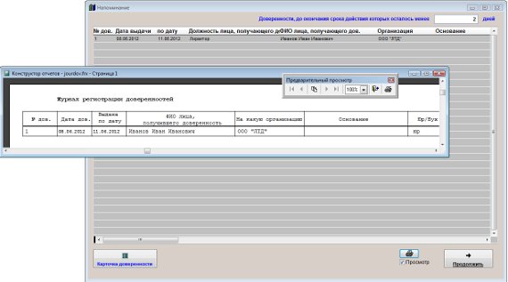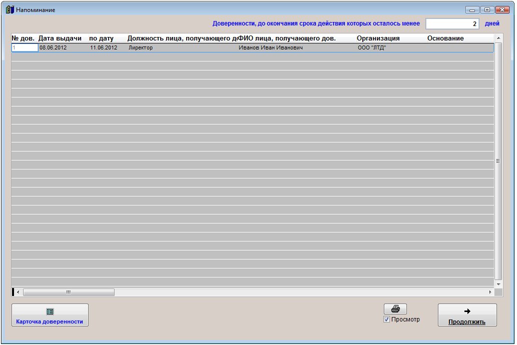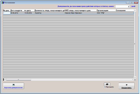В результате при загрузке программы за установленное количество дней до даты окончания доверенности будет появляться окно напоминания.