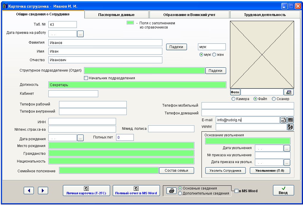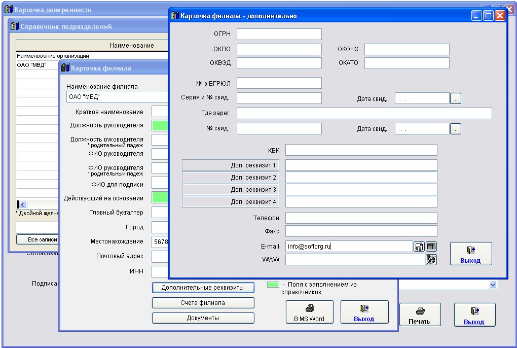 Электронные адреса Лиц, получающих доверенности вносятся в справочнике сотрудников (меню Справочники-Сотрудники), e-mail филиалов вносятся в справочнике филиалов, e-mail Пользователей указываются в профилях пользователей в меню Сервис-Пользователи.
