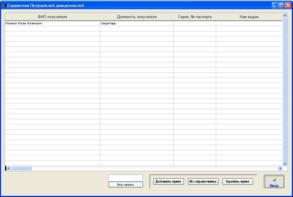 В справочнике Лиц, получающих доверенности нажмите кнопку Добавить из справочника и выберите из справочника сотрудников введенного ранее сотрудника с заполненным e-mail.