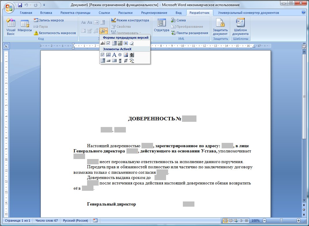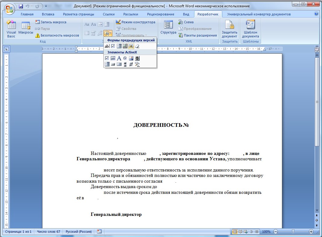 В Microsoft Word 2007 и 2010 нужно будет включить вкладку "Разработчик".
