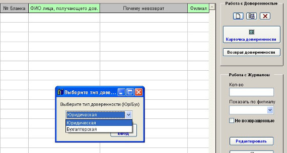 Будет предложено выбрать, какую доверенность Вы хотите создать, юридическую или бухгалтерскую.