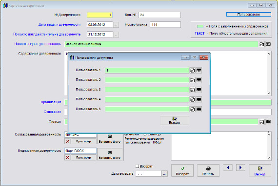доверенностиция программы «Юридический офис 2.9»