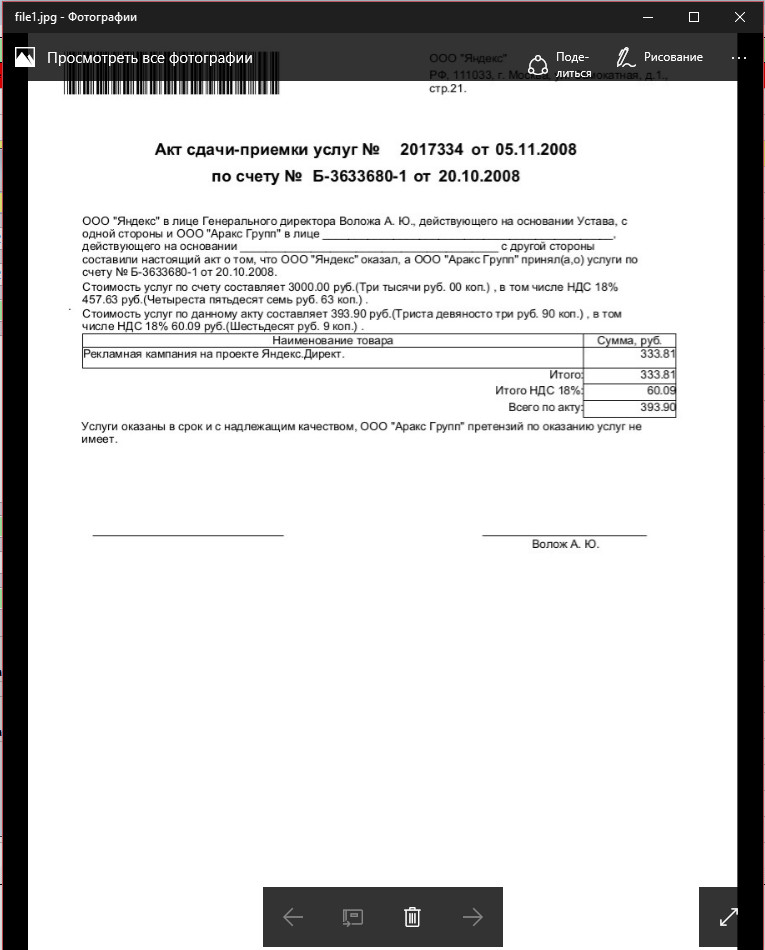 Аналогичным образом Вы можете прикрепить и посмотреть отсканированной изображение подписанной доверенности.