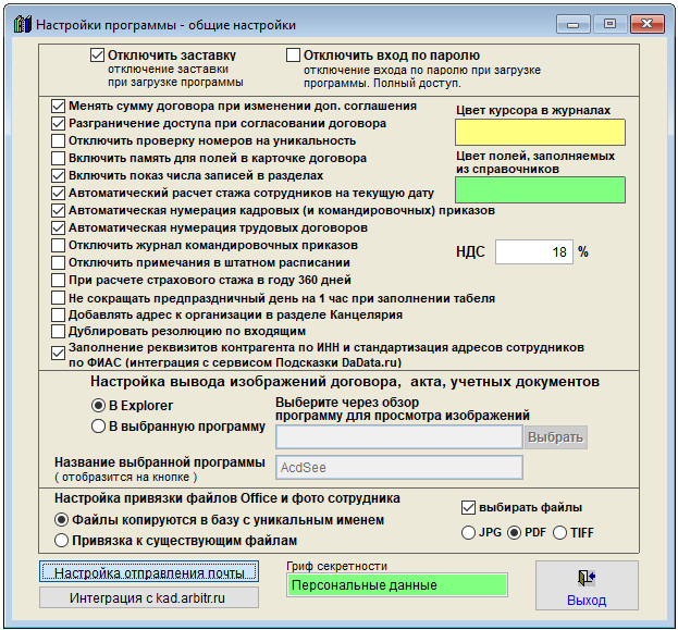 Для настройки возможности уведомлений по e-mail требуется указать в программе параметры используемого почтового сервера.
