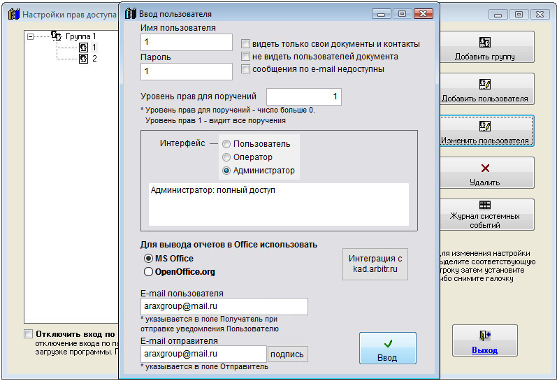 В случае, если включена галочка "При включенном входе по паролю e-mail отправителя настраивается в профиле пользователя", то в случае, если включен вход по паролю, для каждого пользователя можно индивидуально настроить, какой e-mail будет отображаться в поле Отправитель
