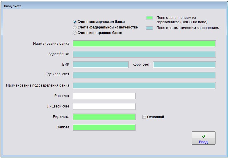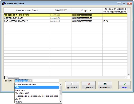 Двойной щелчек мышью по полу "Наименование банка" вызовет справочник банков.