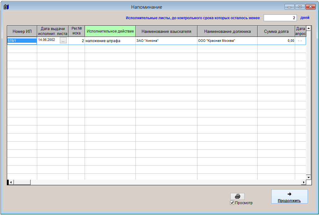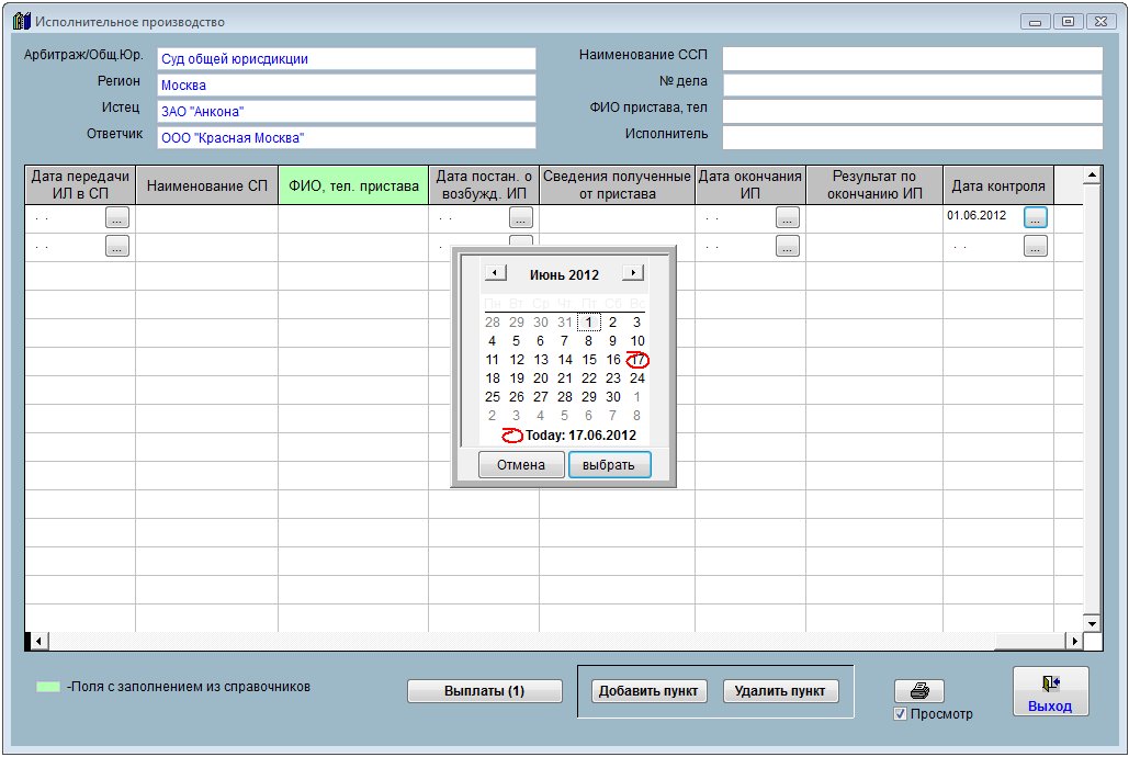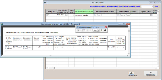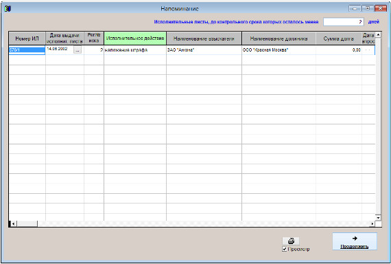В программе "Юридический офис" есть возможность получать оповещение по исполнительным листам на контроле с просроченной датой контроля.