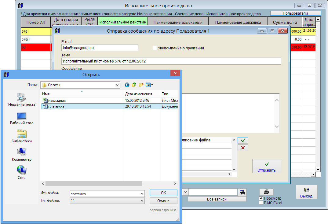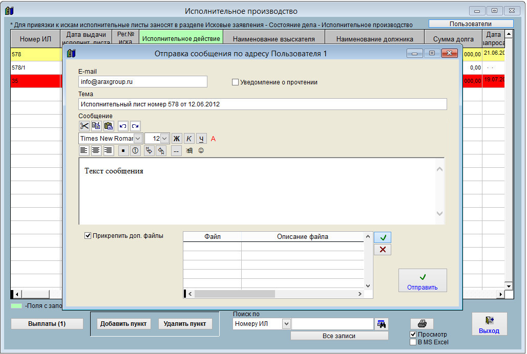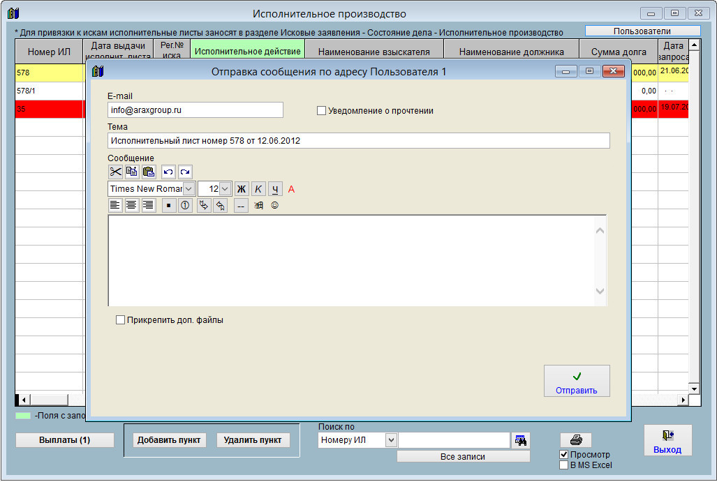 Как отправить уведомление по e-mail Пользователю исполнительного листа