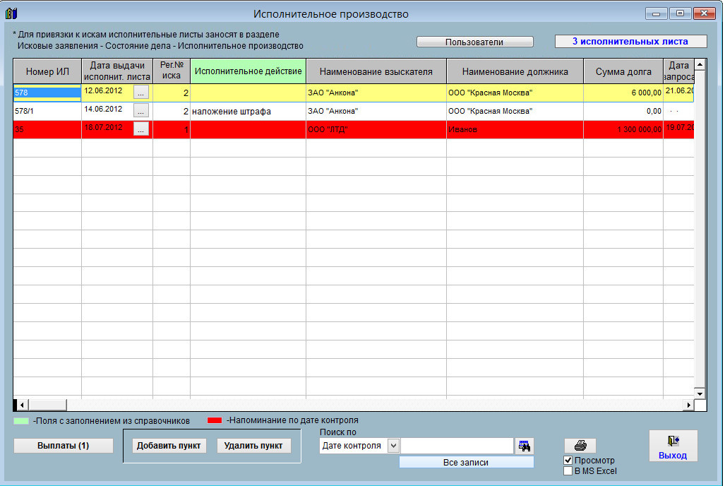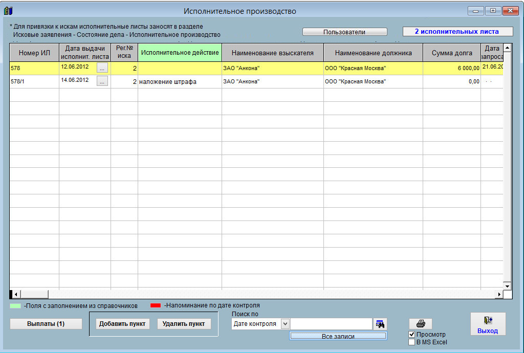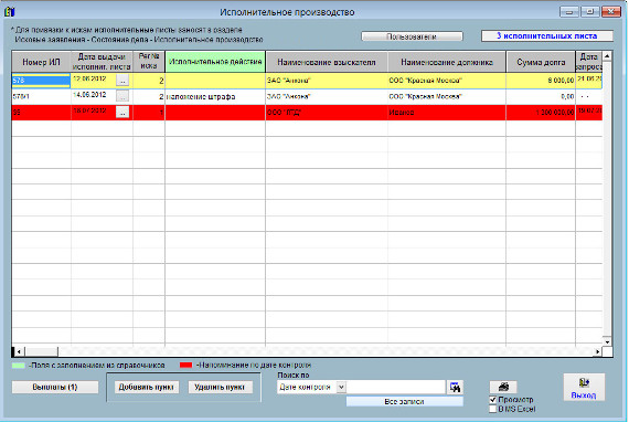 В результате выполнения поиска по журналу исполнительных листов в нем отображаются только записи, соответствующие критерию поиска.