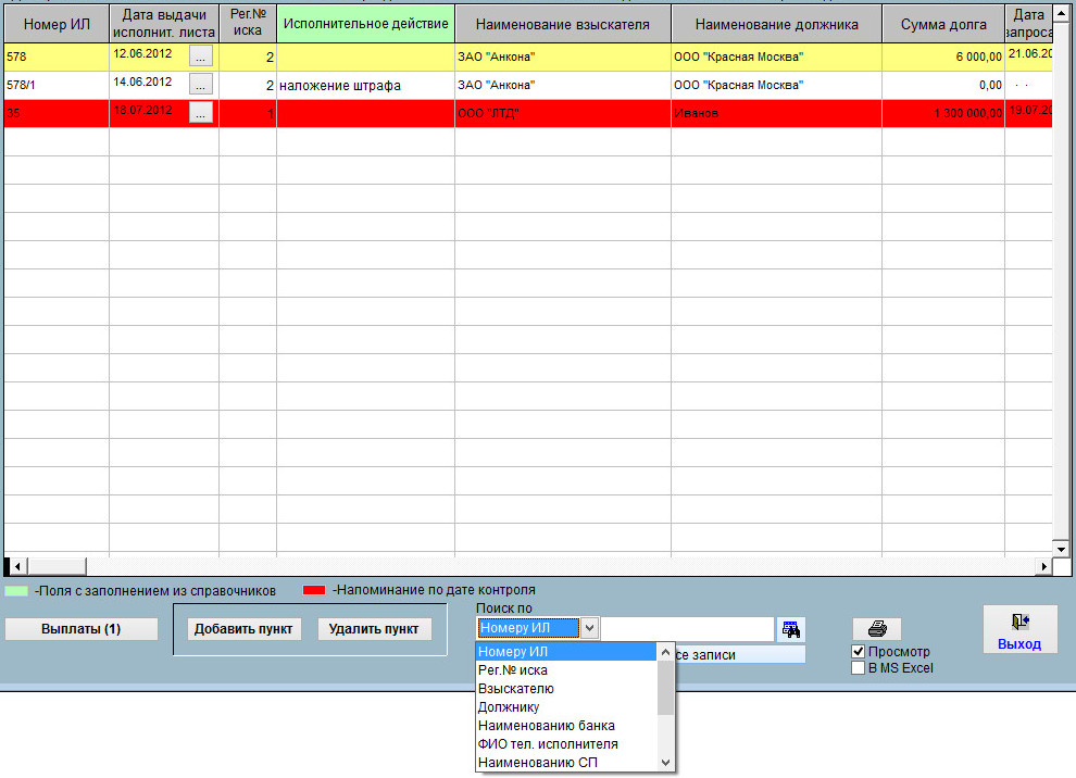 Выберите нужный критерий поиска, в нашем случае это поиск по Номеру ИЛ.