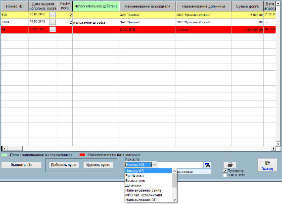Для поиска исполнительных листов по номеру используйте группу быстрого поиска "Поиск по" под таблицей в журнале исполнительных листов.