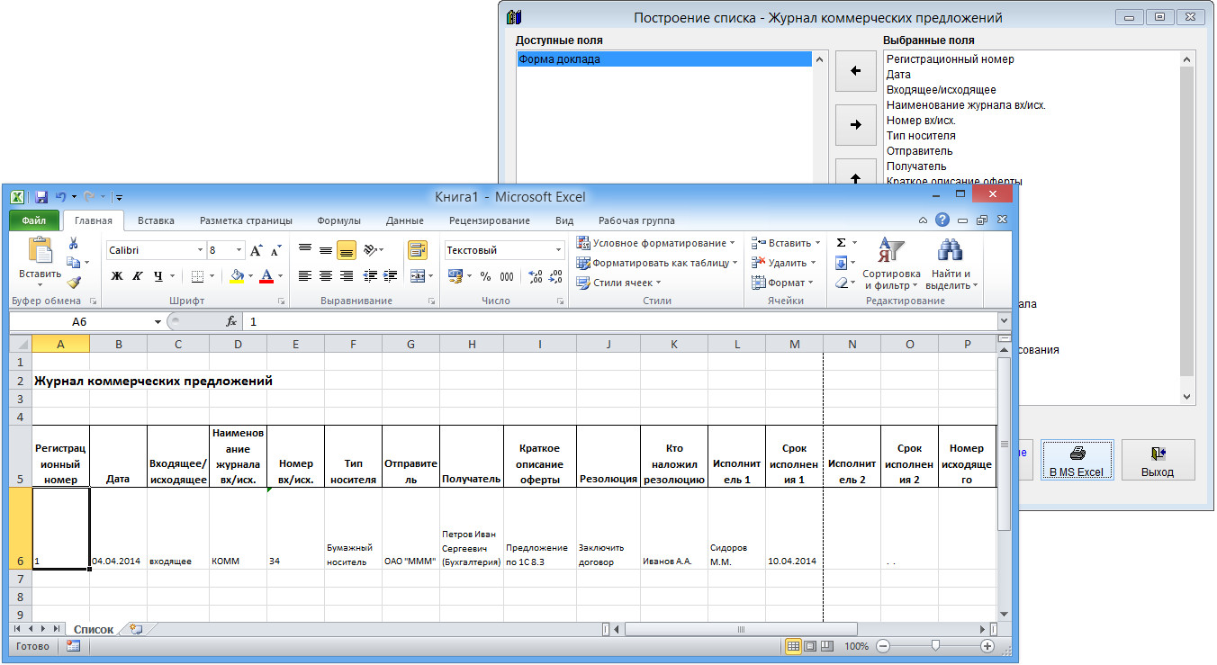 По окончании формирования откроется Microsoft Excel, либо, при соответствующей настройке, OpenOffice Calc.