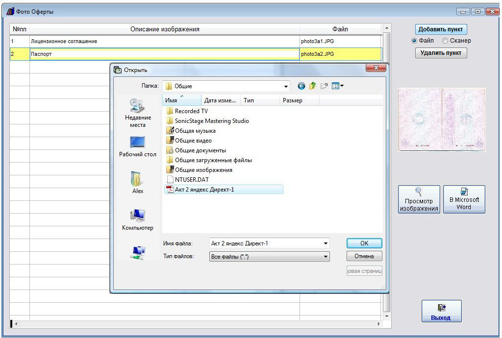 Выберите нужный файл приложения к данному коммерческому предложению и нажмите ОК.