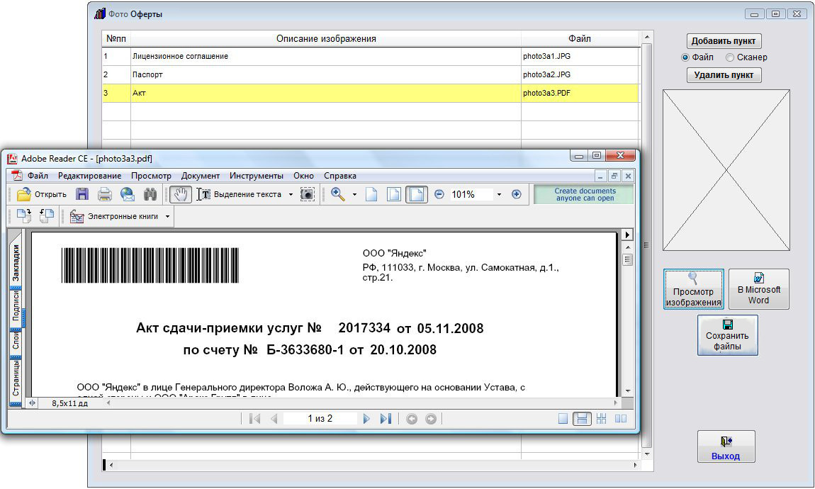 Файлы формата PDF не будут видны на предварительном просмотре и при нажатии на кнопку "Просмотр изображения" будут сразу открываться в Adobe Acrobat Reader.