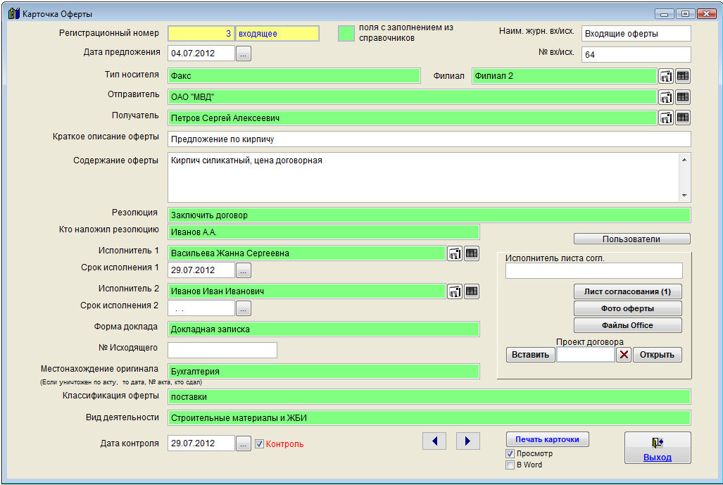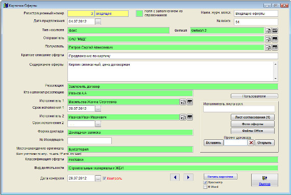 Внесите нужные изменения в карточку коммерческого предложения, после внесения изменений нажмите кнопку "Выход".