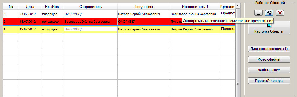 Для копирования ранее введенного коммерческого предложения в журнале коммерческих предложений установите курсор на коммерческое предложение с нужным номером.