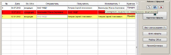 Затем нажмите среднюю кнопку "Скопировать выделенное коммерческое предложение" в группе из трех кнопок в правом верхнем углу формы с изображением двух листов.