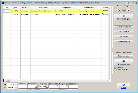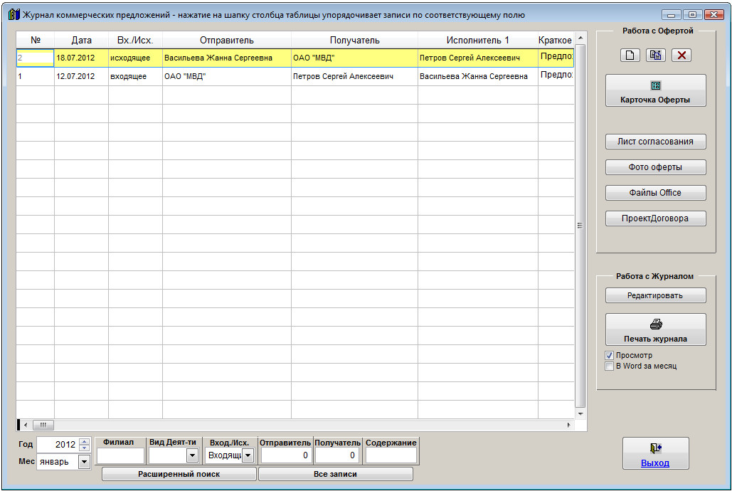 Добавленная оферта отобразится в журнале коммерческих предложений.