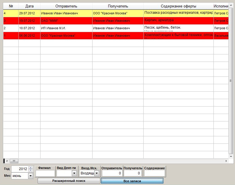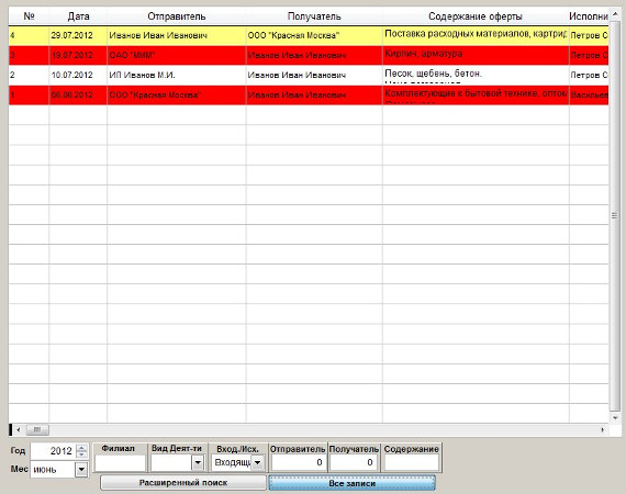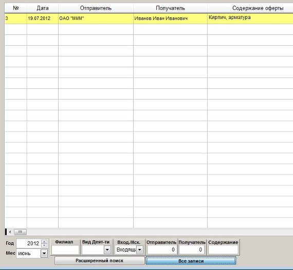 В результате выполнения поиска по журналу коммерческих предложений в нем отображаются только записи, соответствующие критерию поиска.