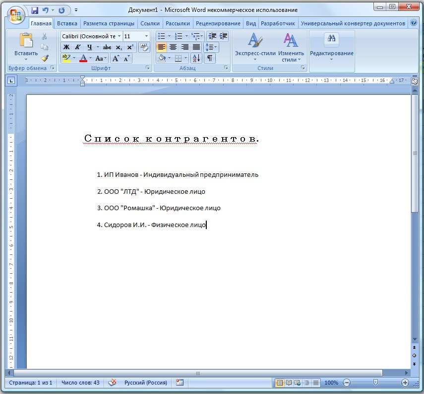Журнал контрагентов будет сформирован в MS Word либо, при соответствующей