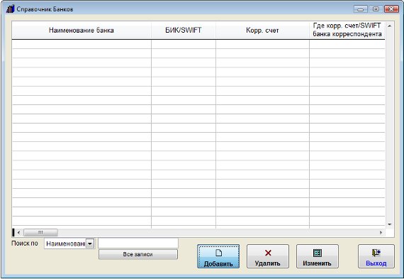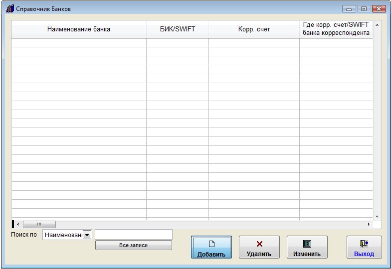 Для поиска по справочнику банков можно воспользоваться полем поиска под таблицей.