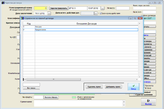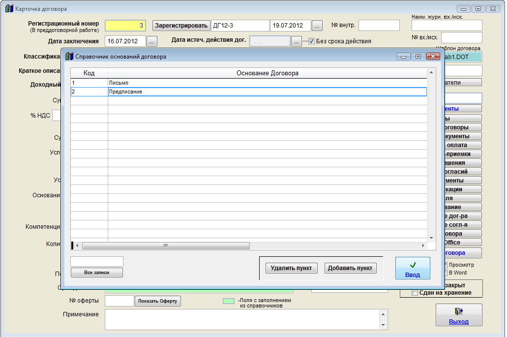 Для добавления записи в справочник используйте кнопку "Добавить пункт", для удаления - "Удалить пункт".