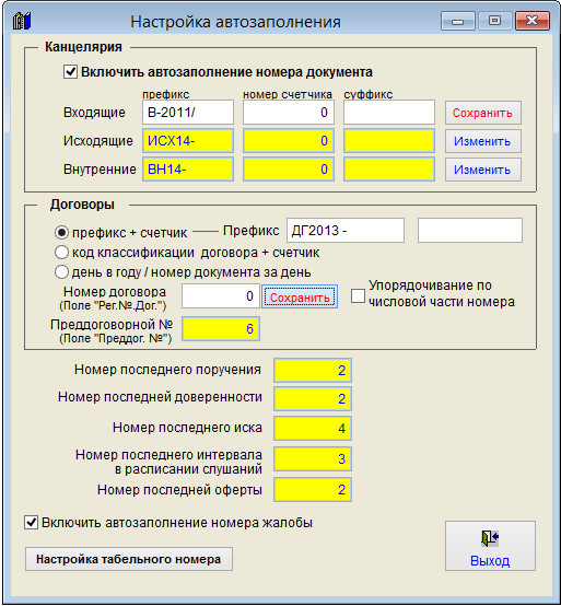 Перенастроить нумерацию можно для разделов Канцелярия и Договоры.