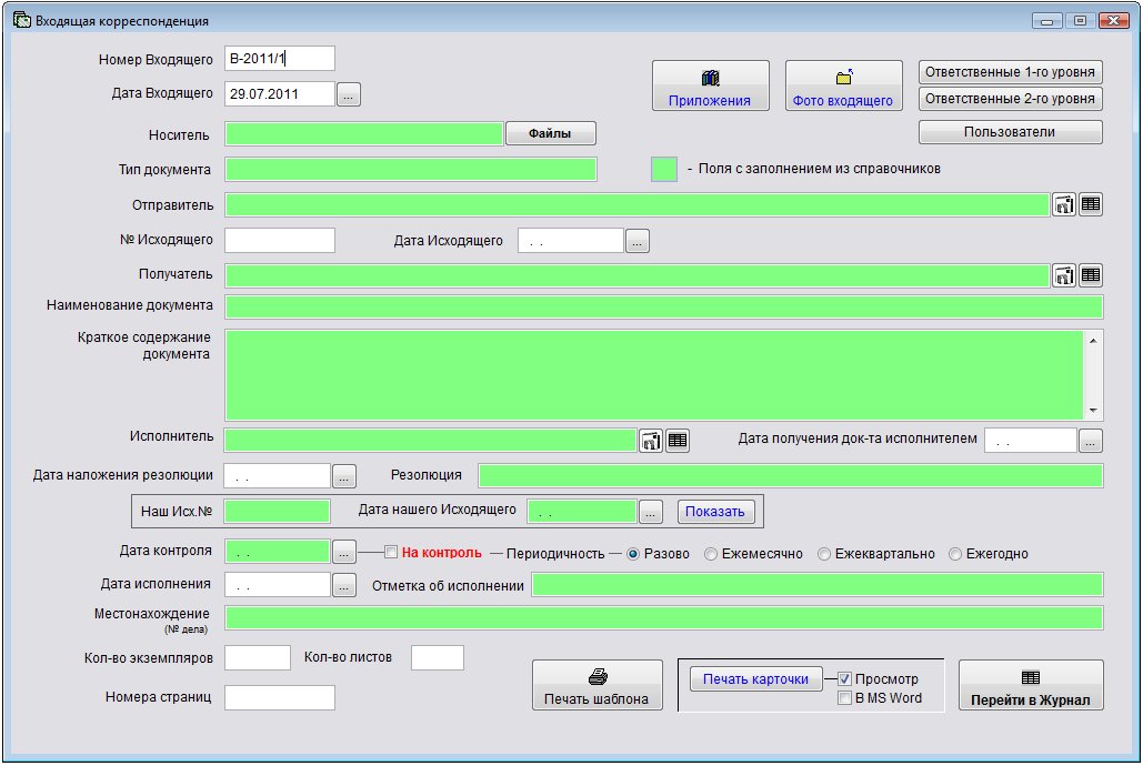 В результате при нажатии на кнопку при Зарегистрировать в карточке договора и создании документа в разделе канцелярия (входящие, исходящие и внутренние документы) номера начнут формироваться с единицы с новыми префиксами.
