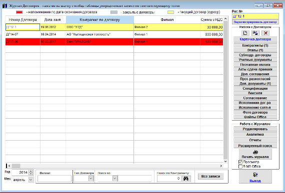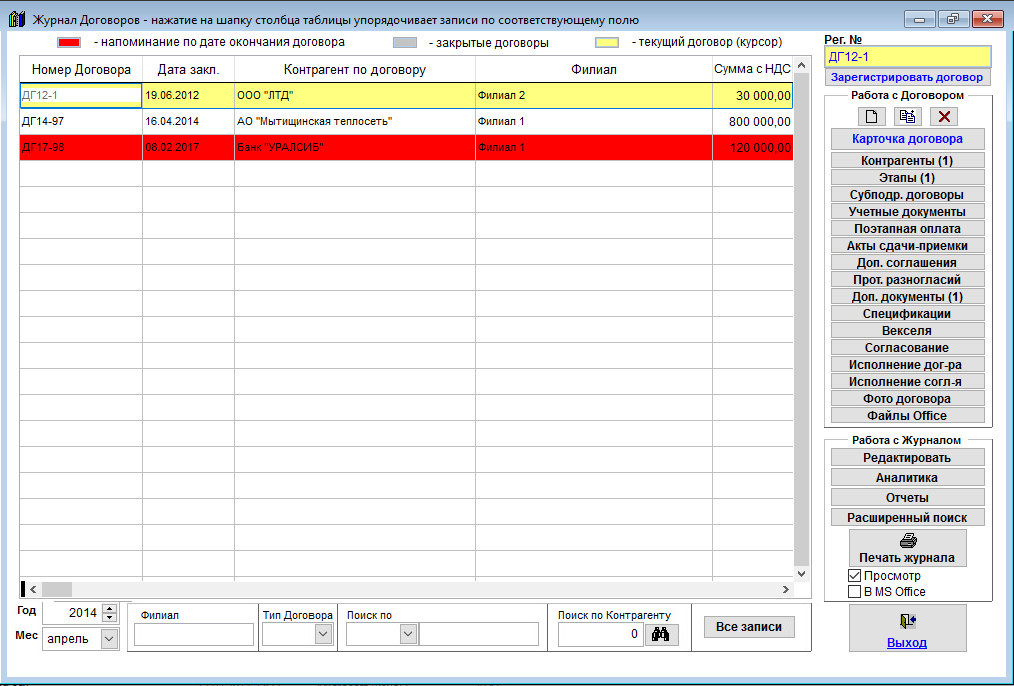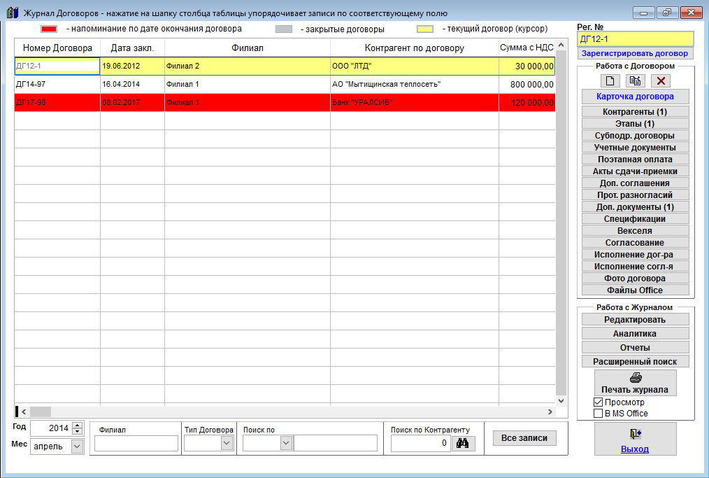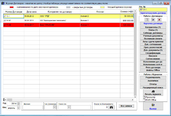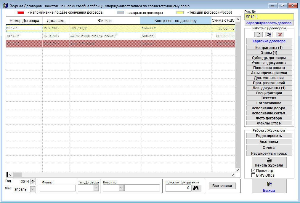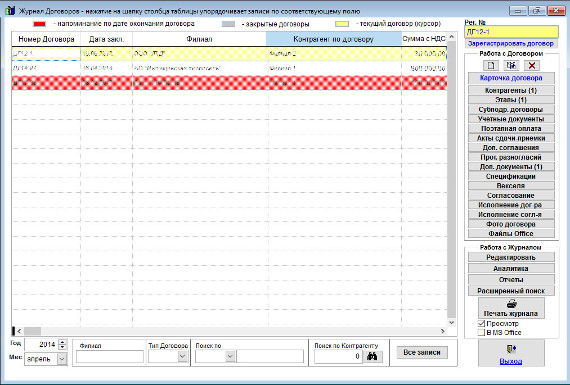 Для настройки порядка столбцов в журналах регистрации (канцелярия, договоры, коммерческие предложения, поручения, доверенности, исковые заявления, жалобы, претензии) требуется перетащить столбец за шапку на нужное место.