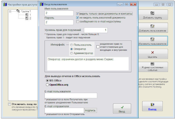 Рассмотрим порядок настройки прав доступа на примере добавления нового пользователя.