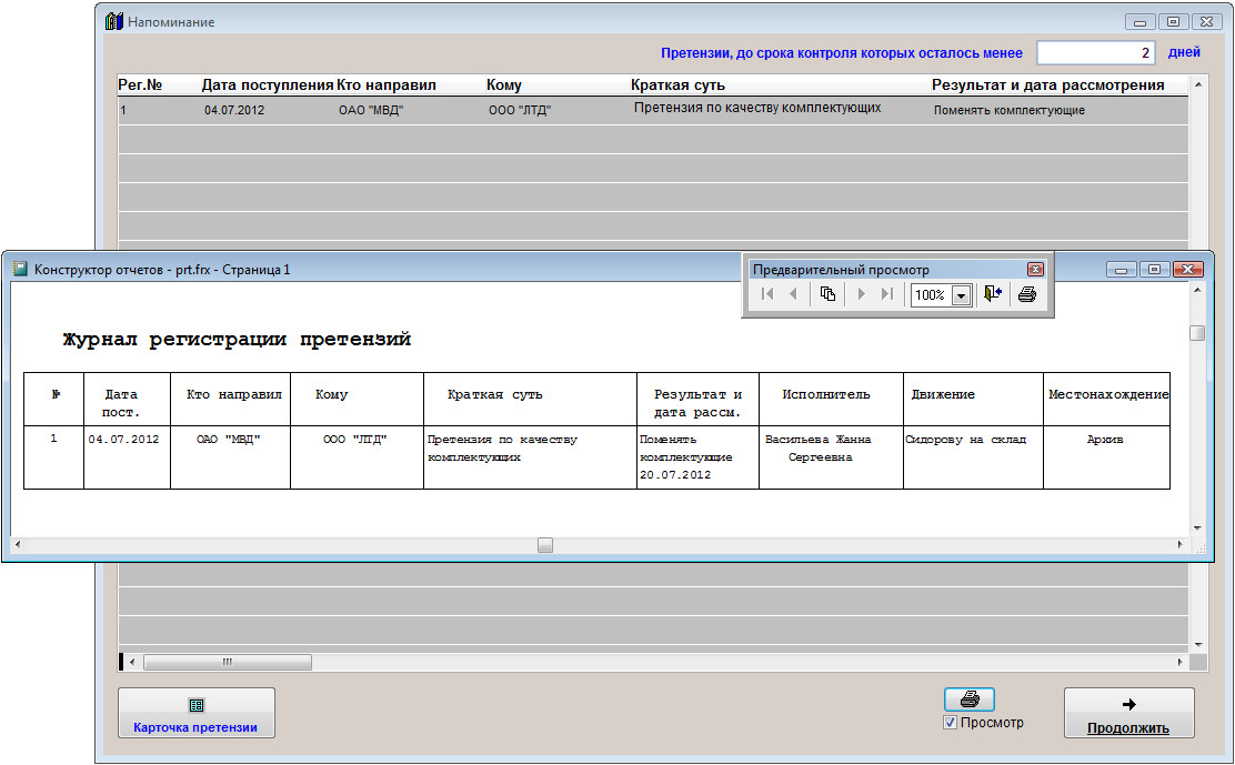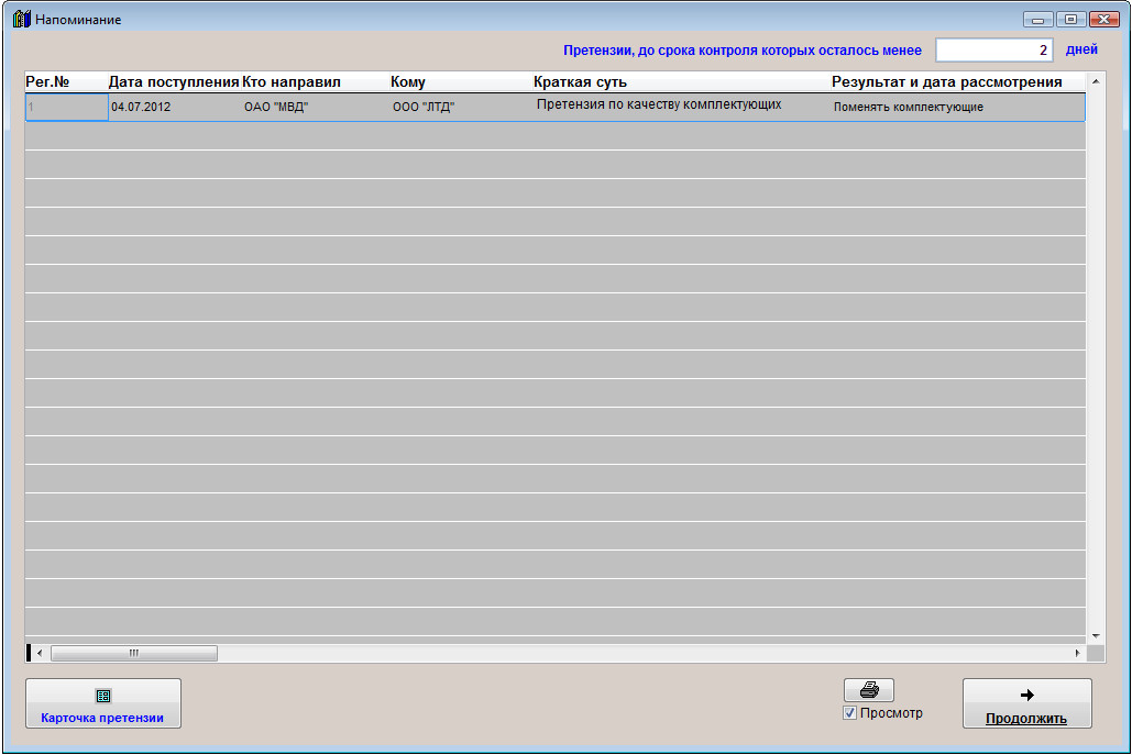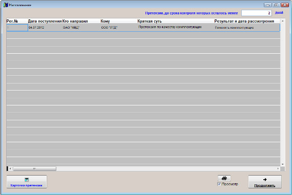 При загрузке программы станет появляться оповещение по Дате контроля претензии.