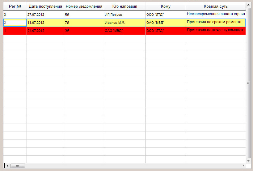 Также по данным претензиям будет осуществляться цветовое оповещение в журнале претензий.