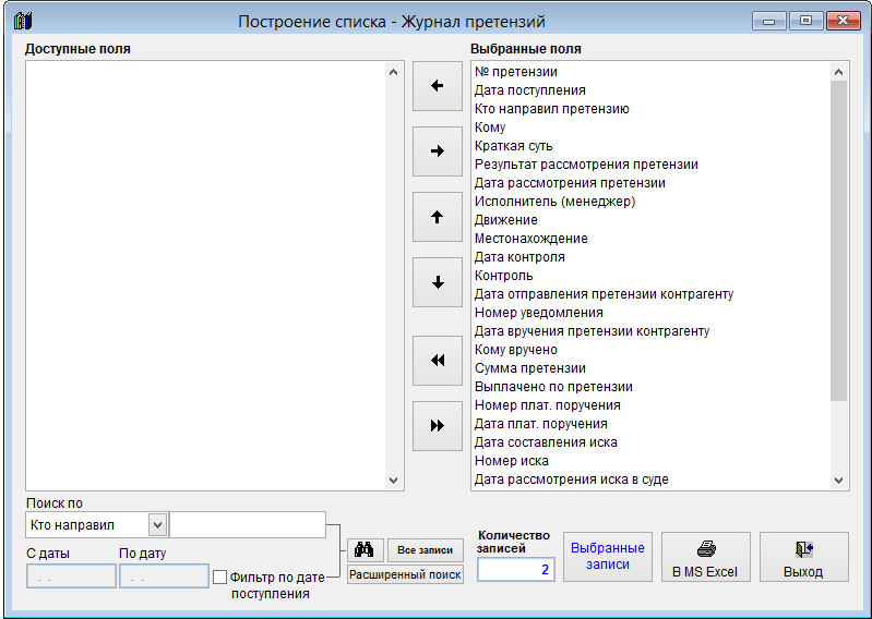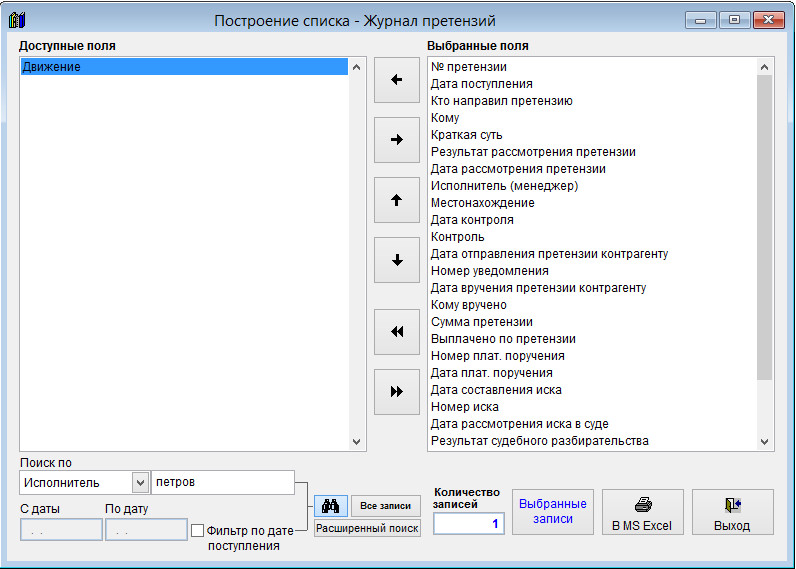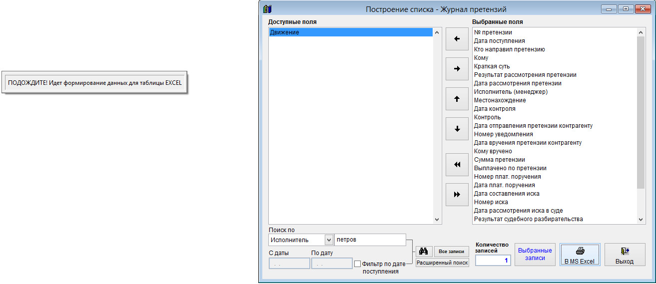 С помощью галочек в столбце "Выбрать" можно дополнительно снять галочки с тех записей, которые не требуется выводить в MS Excel (OO Calc).