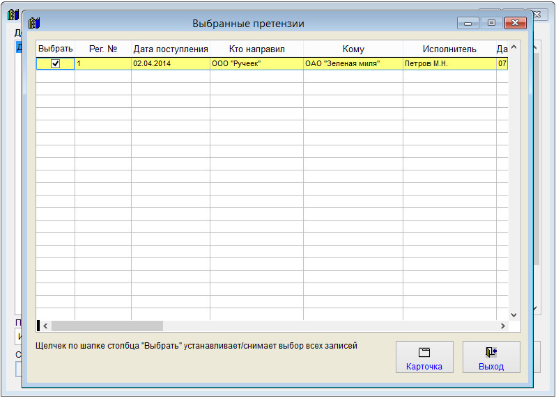 Нажатие на столбец "Выбрать" устанавливает/снимает все галочки.