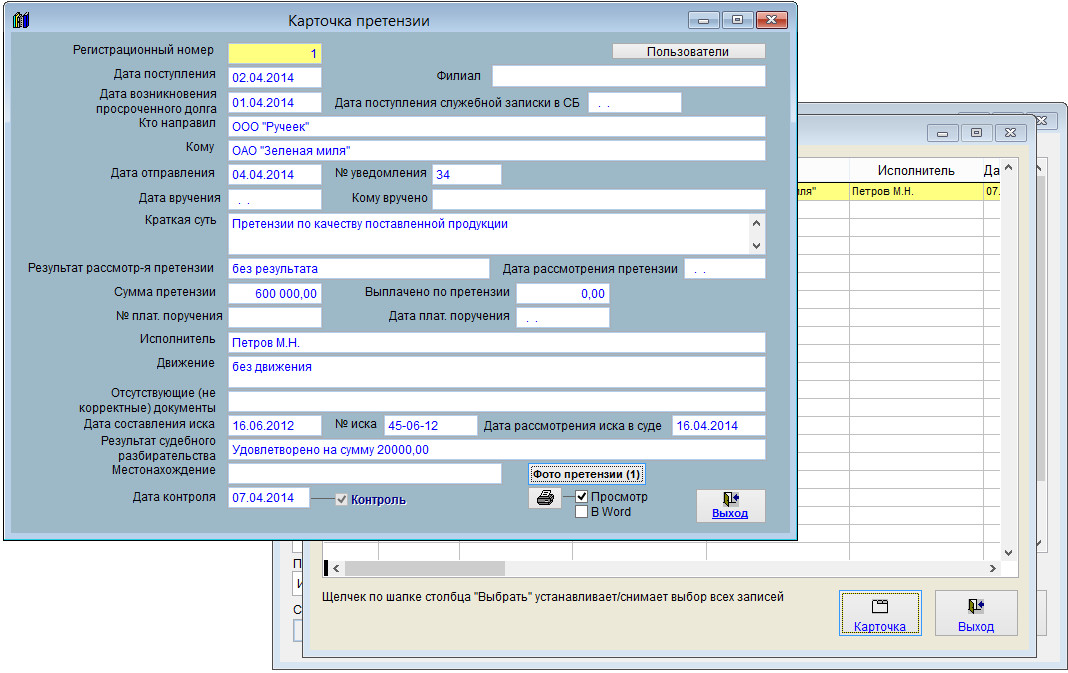 Также из данного раздела можно просмотреть карточку договора, нажав на кнопку "Карточка договора".