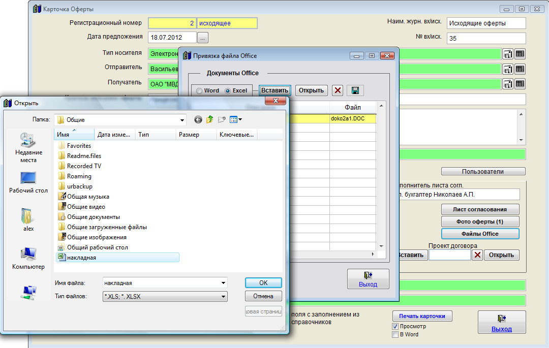 Выберите нужный файл приложения к данному коммерческому предложению и нажмите ОК.