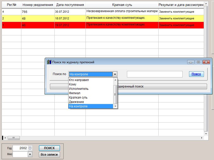 В журнале претензий отобразятся только те записи, которые соответствуют критерию поиска, т.е. у которых не снята галочка Контроль.