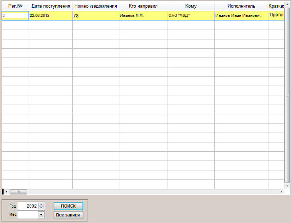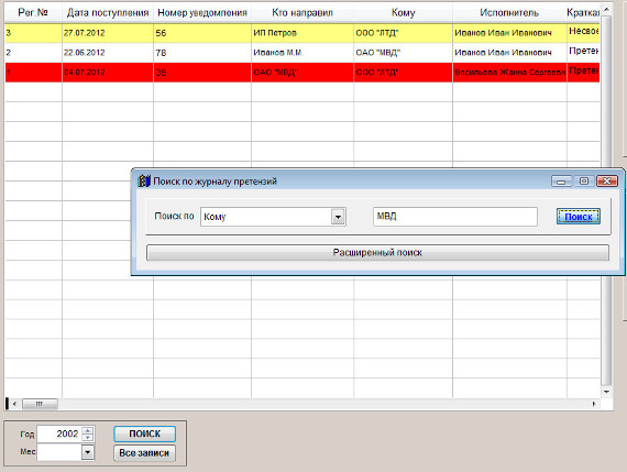 В журнале претензий отобразятся только те записи, которые соответствуют критерию поиска.