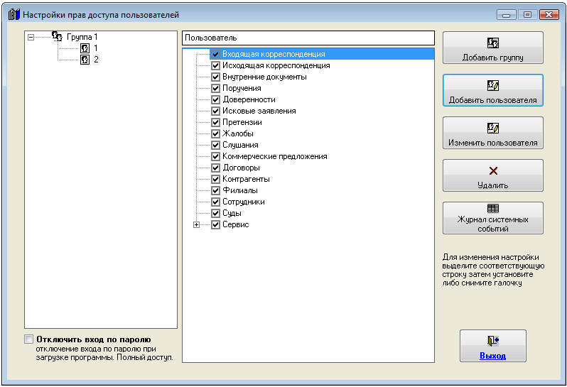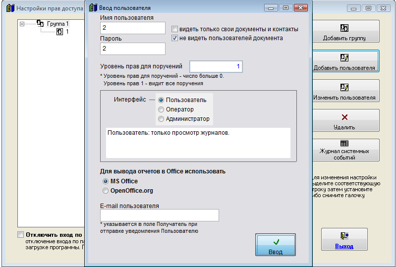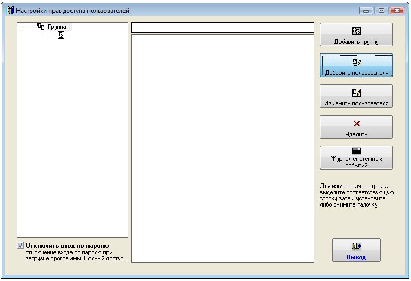 Для добавления нового пользователя и интерфейсом "Пользователь" выберите пункт меню "Сервис-Пользователи".
