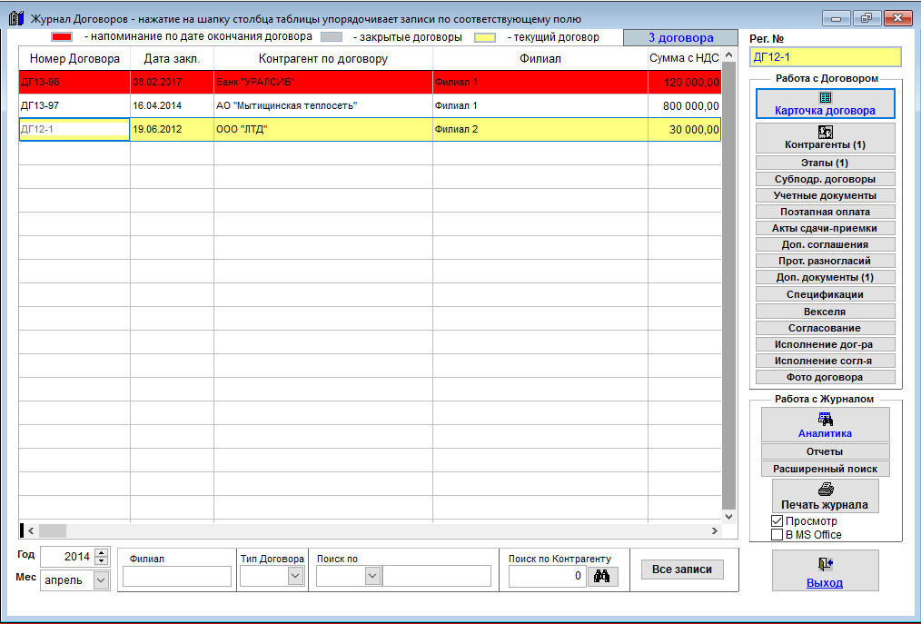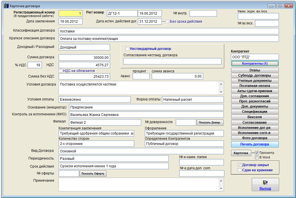 Карточка договора и все дополнительные разделы будут доступны только для просмотра.